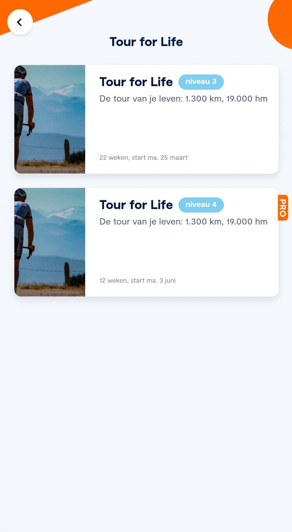 Download de gratis app en ontvang per e-mail een code waarmee je tot en met de start van Tour for Life 2026 gratis toegang hebt tot alle Pro-functies binnen Fondo. Je zit nergens aan vast, na Tour for Life stopt jouw abonnement automatisch